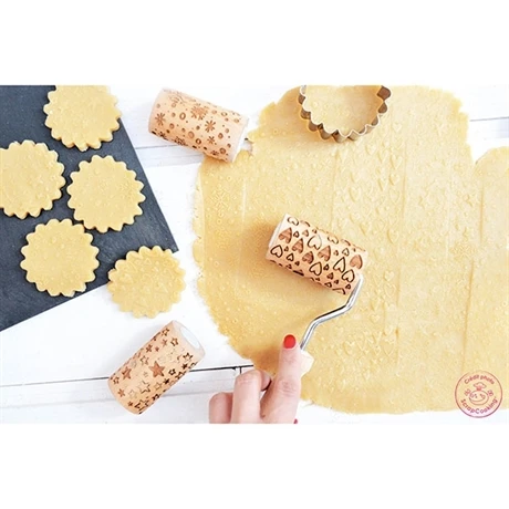 Imprimez des motifs sur vos pâtes à cookies ou autres biscuits en un instant avec les 3 mini rouleaux empreintes en bois interchangeables Scrapcooking : vissez un des rouleaux à la poignée, étalez votre pâte sur une surface plane puis appuyez sur le rouleau pour le laisser courir le long de vos plaques de biscuits. Des motifs en forme d’étoiles, de cœurs ou de flocons de neige parsèmeront vos desserts pour des créations originales et ludiques. Facile à utiliser, vous pourrez vous amuser avec petits et grands pour concevoir des desserts uniques. Après utilisation, préférez un lavage à la main plutôt qu’au lave-vaisselle pour éviter de détériorer le bois des rouleaux.