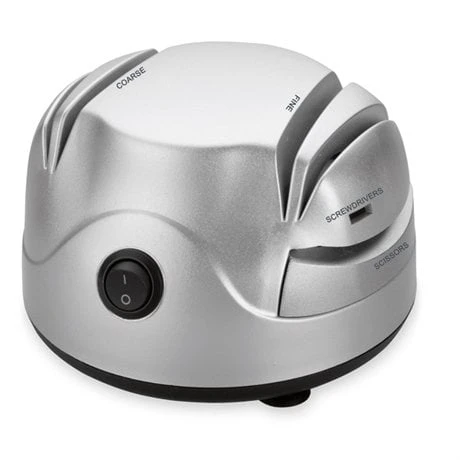 Polyvalent, cet aiguiseur et affûteur Électrique 4 meules permet d’affûter facilement les couteaux à lame lisse, les ciseaux et de réparer les tournevis à tête plate. Il comporte :