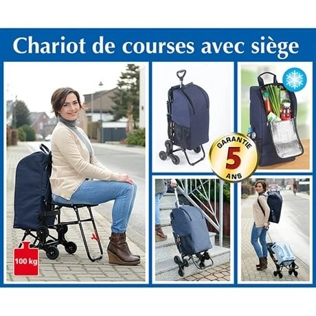 Ce chariot de courses avec siège est parfait pour aller faire vos courses, ou le marché.