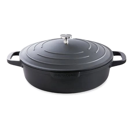 La cocotte légère en fonte d’aluminium basse ronde 28 cm noire Mathon cumule les avantages. Conçue en fonte d’aluminium, elle est 3 fois plus légère qu’une cocotte traditionnelle en fonte d’acier tout en conservant ses propriétés de conduction de la chaleur et de préservation des saveurs. Sa hauteur avec couvercle de 14 cm facilite son rangement dans vos placards pour plus de praticité tout en offrant une belle capacité de cuve de 4,1 L.