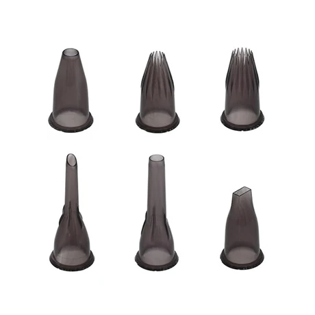 Le coffret 6 douilles en Tritan Garnir sur support va vous permettre de réaliser de somptueuses décorations pour des gâteaux aussi variés que vous le souhaitez. Votre coffret est composé de 6 formats de douille différents : La première, petite et fine, vous permettra de réaliser de toutes petites boules décoratives, avec la pointe vers le haut pour les plus expérimenté. La deuxième et la troisième sont en forme d’étoile plates ou bombés selon celle que vous choisissez. La quatrième est idéale pour la fabrication de délicieux petits choux, acras, et pâtisseries de forme circulaire. La cinquième douille dispose d’un format idéal notamment pour le remplissage de vos petits pots ou verrines et enfin la dernière douille, de forme rectangulaire, vous permettra de réaliser des décorations élaborées et très actuelles sur vos pâtisseries.