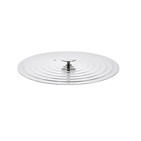 Entièrement en acier inoxydable, ce couvercle est parfaitement plat et surmonté d’un large bouton en inox facile à prendre en main. Sa finition extérieure est polie, vous pouvez occasionnellement utiliser de la pâte à polir afin de lui redonner de l’éclat. Esthétique et léger, ce couvercle n’en est pas moins robuste. Il dispose par ailleurs d’un profil renforcé.