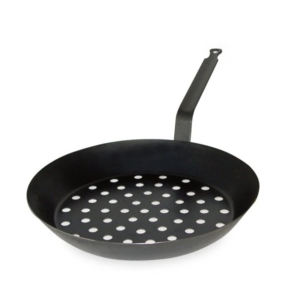 Traditionnelle, la poêle à marrons est fabriquée en tôle d’acier connu pour sa robustesse et dispose de trous dans le fond. Pratique, elle vous permet de saisir et de cuire très facilement vos marrons et châtaignes sur la braise ou sur vos plaques de cuisson sans les brûler. En tôle, cette poêle assure une cuisson rapide et homogène de vos aliments. Son fond ajouré permet une diffusion optimale de la chaleur, pour des châtaignes cuites à point.