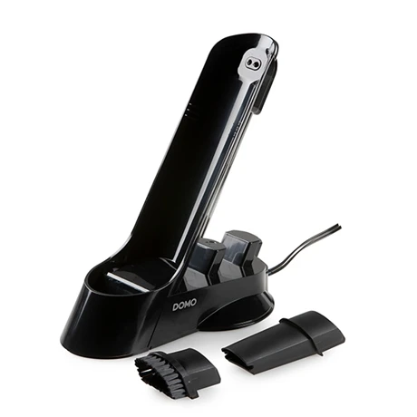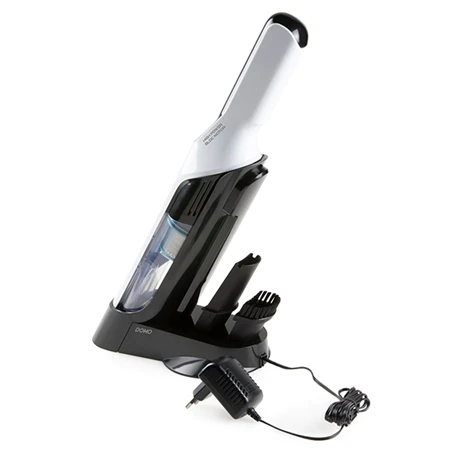 L’aspirateur à main Domo a une durée de charge de 4 heures. Sa base de recharge est incluse. 2 embouts sont également inclus :