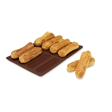 Cette Flexi’plaque Mathon en silicone avec 8 empreintes pour éclairs est idéale pour réaliser de délicieux éclairs maison, moelleux et bien dorés. De haute qualité, en silicone ultra-résistante, cette plaque est souple et indéformable, anti-adhérente et très résistante. Assurant une cuisson parfaite, elle résiste à des températures allant de -20°C à +220°C.