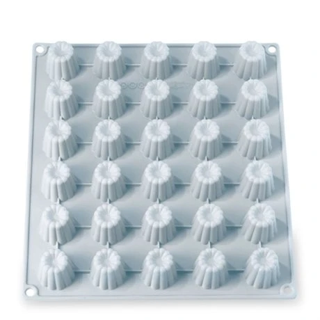 Cette Grande Flexi’plaque en silicone permet de préparer jusqu’à 30 mini-cannelés en une fournée pour les apéritifs, cocktails, en accompagnement d’entrées ou de plats chauds servis à l’assiette grâce à ses 30 empreintes cannelées.