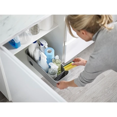 Idéal pour organiser parfaitement les placards, le coffret de rangement accès facile CupboardStore Joseph Joseph est conçu de façon à faciliter la visibilité et l’accès aux produits et accessoires qui y sont rangés. Muni de roues qui le font glisser dans le placard lorsqu’on le tire vers soi, il possède un compartiment réservé aux petits articles comme les éponges.