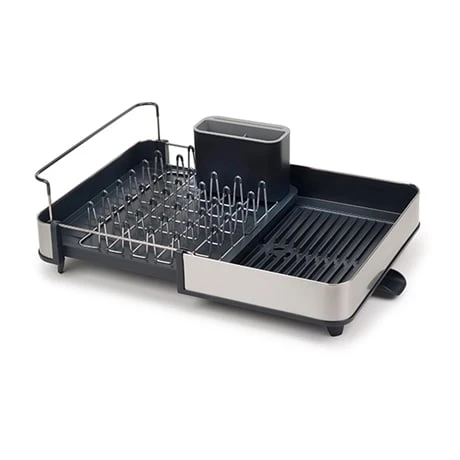 L’égouttoir à vaisselle extensible noir et inox Extend™ Steel de Joseph Joseph vous permet d’augmenter facilement votre espace pour égoutter votre vaisselle. Sa taille peut presque doubler si besoin pour égoutter la vaisselle d’une seule personne ou bien de toute une famille. Un bec verseur intégré évacue l’eau en excédent, ajustable au besoin.