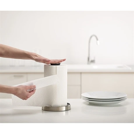 Ingénieux, ce support pour rouleau à essuie-tout pour la cuisine dispose d’un capuchon à rotation permettant de verrouiller le rouleau et de prélever des feuilles facilement parfaitement découpées ! Grâce au bord surélevé de la base, le rouleau de papier essuie-tout restera toujours en place, et ceux quelle que soit la quantité restante. La base antidérapante permettra un maintien optimal de votre rouleau pendant l’utilisation. Facile à changer, il vous suffira de tourner le capuchon pour remplacer le rouleau.