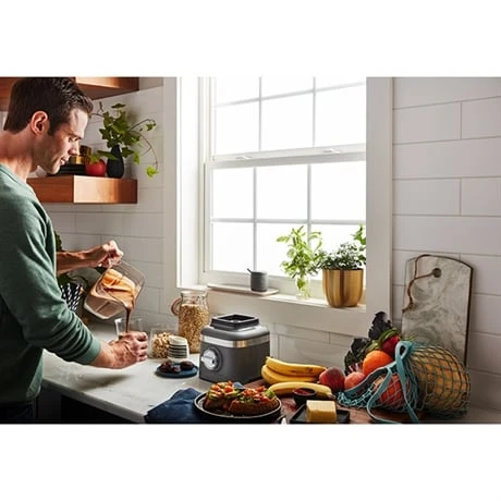 Avec un véritable savoir-faire et un design iconique, le blender 3 vitesses 1,4 L 650 W gris mat pratique et intuitif va devenir l’élu de la cuisine. Avec lui, toute la famille découvre au quotidien le plaisir du « fait maison » avec de fameuses préparations aux textures parfaites et aux goûts préservés. Smoothies, lait d’amande, granités à la glace pilée, gaspachos, milkshakes, pâtes à tartiner sont réalisés en toute simplicité ; place à la dégustation. Les appareils de la marque Kitchenaid séduisent de plus en plus les adeptes de cuisine saine aussi bien dans des cuisines professionnelles que domestiques. Un esthétique vintage soigné, une palette de couleur incroyable, une fiabilité et des performances sans pareil sont les marqueurs d’un succès centenaire.