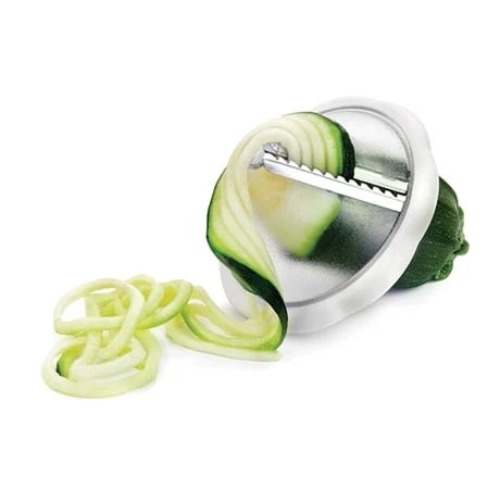 Ce lot de 3 coupes spirale spaghetti, lisse et dentée vous offre trois manières originales de découper vos légumes et vos fruits. La marche à suivre est simple : insérez la carotte, courgette ou autre aliment dans le coupe spirale, puis tourner le à la manière d’un taille-crayon. Grâce à ses lames en acier inoxydable de 5,5 cm, l’ustensile découpera aisément même les fruits les plus durs. Il ne vous reste plus qu’à manger les rubans crus, ou cuits.