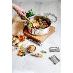 Sauteuse Anti-adhérente Avec Anses Excell’Inox 28 Cm Et Couvercle En Verre