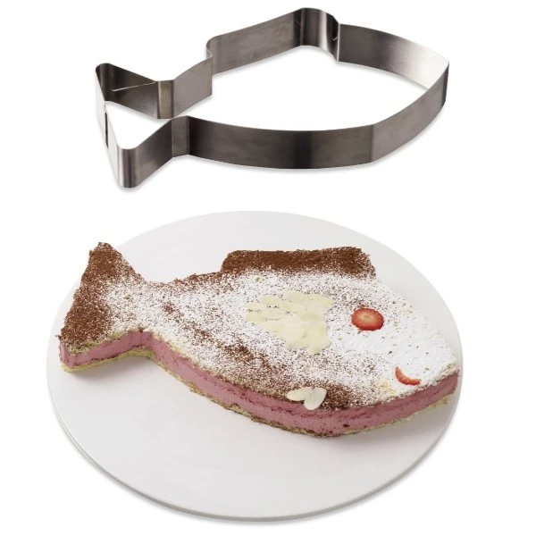 Le moule poisson permet de réaliser gâteaux, mousses, entremets mais aussi terrines et pâtés en leur donnant une forme originale. Le moule poisson peut aussi servir d’emporte-pièce pour découper vos pâtes en forme de poisson. En inox, le moule poisson se nettoie très facilement.