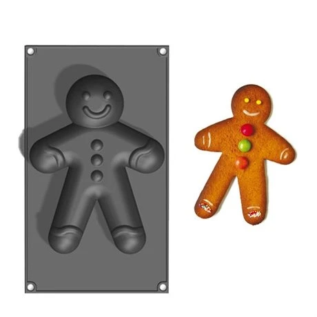 Le Moule Grand bonhomme pain d’épices est en silicone platine noir métallisé pour réaliser des bonhommes en pain d’épices. Cuisson dorée assurée pour des réalisations moelleuses et gourmandes. Démoulage facile grâce au silicone.