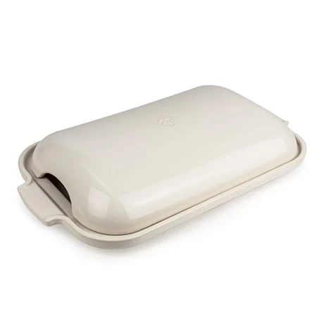 Cette plaque boulangère écru en céramique vous permettra de préparer en une seule fournée 2 mini-baguettes de 110 g, 2 mini-financiers de 70 g et 2 mini-boules de 70 g, pour une table de petit-déjeuner aussi belle que diversifiée. Une fois votre pâte préparée, confiez à votre plaque boulangère la cuisson de vos mini-pains : la pâte n’accroche pas, les évents et le couvercle non émaillé laissent s’évaporer juste ce qu’il faut d’humidité pour une croûte craquante et une mie délicieusement aérée, cuite à cœur.