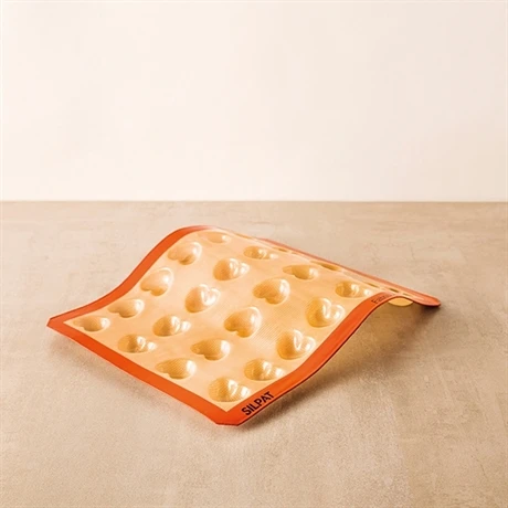Tendres et originales, les bouchées confectionnées dans le moule 28 mini-cœurs Silpat ont une saveur particulière ! Innovant, ce moule breveté est conçu en toile de verre souple, revêtue d’une couche de silicone antiadhérent. Ainsi, il n’est pas nécessaire d’ajouter de la matière grasse avant de verser la préparation, et le démoulage se fait facilement. Vous pourrez cuisiner plus sainement sans perdre en praticité grâce à ce produit fabriqué en France.