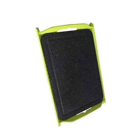 Le plateau de décongélation Dégel’Pad est idéal pour décongeler rapidement vos aliments. Ce plateau est en aluminium avec un revêtement émaillé, qui retient et diffuse la chaleur. Ainsi, vos aliments posés sur ce plateau seront décongelés plus rapidement que simplement à l’air ambiant. Il évite de devoir passer les aliments au micro-onde ce qui détruirait les bienfaits et le goût. La rainure autour permet de récupérer l’eau. Il est préconisé d’évacuer l’eau au fur et à mesure afin d’éviter la prolifération de bactéries. Le plateau est livré avec un panier qui servira de panier de lavage pour les fruits et légumes et de planche à découper. Pratique et hygiénique, ce plateau vous servira tous les jours. Sa couleur sobre et sa faible épaisseur permet de l’entreposer dans votre cuisine et l’avoir toujours sous la main !