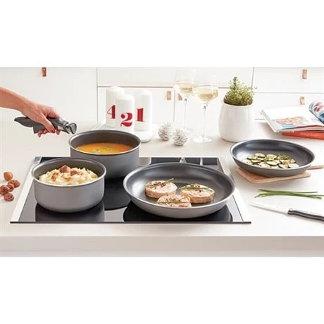 Avec cette petite batterie, faire la cuisine est plus facile ! Grâce au manche amovible, vous pouvez cuisiner plusieurs préparations à la fois sans encombrer votre plaque de cuisson ou votre plan de travail. Pratique et facile, le « clipsage » du manche s’adapte parfaitement à chaque ustensile et le tient fermement pour assurer une manipulation facile en toute sécurité.