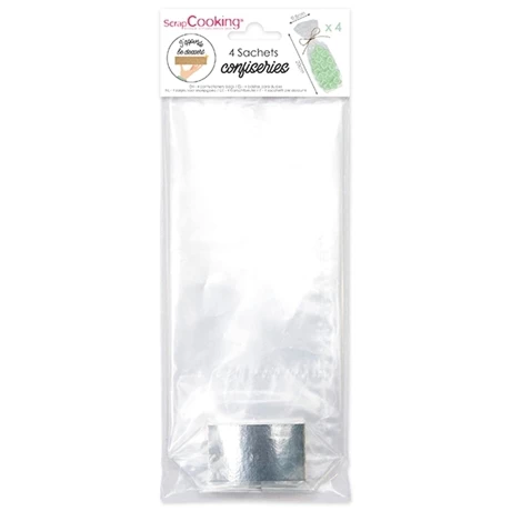 Ces sachets en plastique transparent recyclables sont vendus à plat et prêts à l’emploi. Vous n’avez qu’à placer le fond en carton argenté intégré pour avoir un fond plat et remplir le sachet de confiseries.