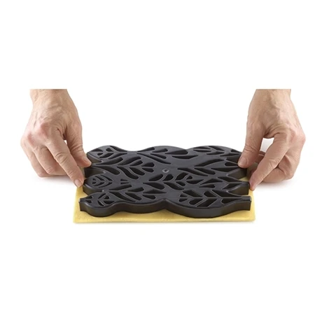 Spécialement conçu pour aller au four, ce découpe sablés offre une coupe nette et parfaite pour que ceux-ci ne se collent pas pendant la cuisson. La forme entrelacée des feuilles permet à l’emporte-pièce d’utiliser toute la pâte et d’éviter le gaspillage. Adaptée au four jusqu’à + 180°C, la matière est aussi facile à nettoyer à la main ou au lave-vaisselle.