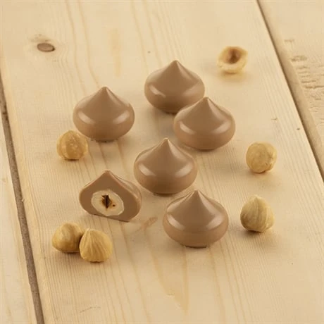 Avec cette plaque de 15 cavités en forme de larges gouttes, vous obtenez de délicieux chocolats que vous pouvez fourrer avec un cœur fondant ou croustillant en insérant des fruits secs avant la prise au froid.