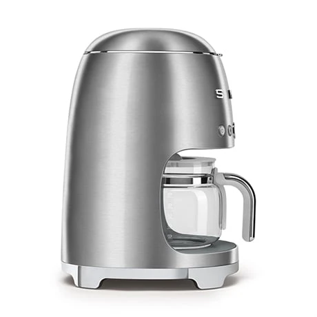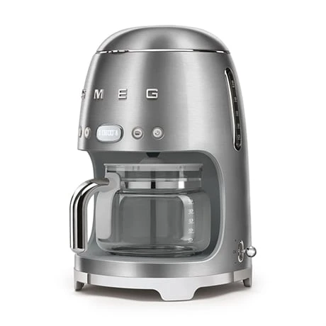 La Machine à café Filtre SMEG chrome 1050 W DCF02SSEU assure performances et design pour des dégustations de café savoureuses au quotidien. Son esthétique inspirée des années 50 révèle des formes douces et arrondies qui trouvent toute leur place dans la cuisine. Ses détails de finitions en acier brossé séduisent les amateurs de beaux objets et ses performances technologiques les fans de cafés savoureux.