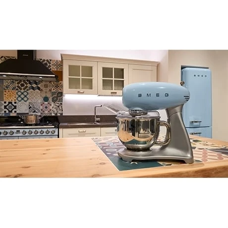 Le robot sur socle SMEG bleu azur 800 W SMF02PBEU est un allié précieux pour réaliser tous types de préparations.